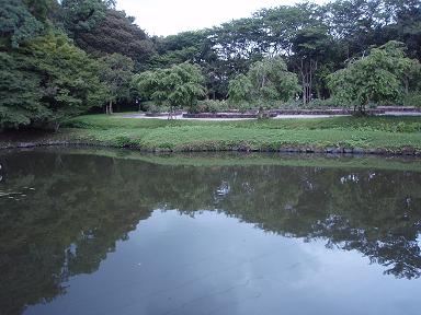 なんとなく庭園のある場所に。ここには親子づれがいた。虫を捕まえたりしていた。庭園散策していたら、雨が。。。。リカの日傘は雨天兼用。と言うわけで、お友達と一緒に傘に入る。一見、ラブラブ