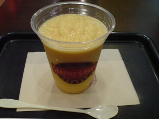 あまりの暑さにさすがに水分補給と思って、これを。。。。って、フローズンマンゴーみたいなやつで、お店で飲んでいたら、頭が『キーン