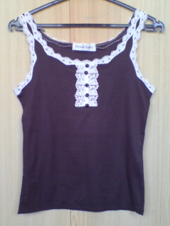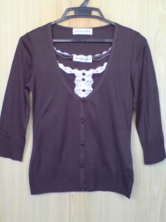 めっちゃ色が悪いですが、こげ茶です。これは、中の方。個人的には、袖があるほうが好みなんだけどな。。。。。と思ったんですが。割とレースとか可愛いです。綿なんだけど、結構光沢があります。(って、この写真じゃわからんな。。。。