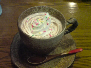 リカは寒かったのでココアを。普通なら、多分、ミックスジュースなんだろうけど。Fぷーはミックスジュースで、ぉぃたんとTさんはコーヒーでした。