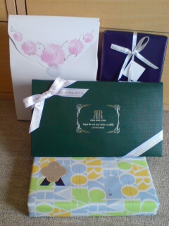 手前のカラフルな包装紙に包まれた箱の中身はフィナンシェ。もしかして、この人は、リカの好みをわかってる