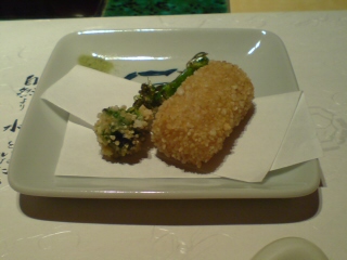これは生麩の揚げたものと菜の花の揚げた物です。