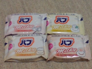 4種類。えーっとにおいは。。。。。さほど変わりないような?確かに微妙に違うんだけど。。。。でもそんなに大差ない????多分、もう買わないかな。。。。。甘い香りも控えめすぎる。。。。リカはもっと濃厚なのを想像してましたから。それと色が全部、白なんだよね。それもつまらなかったw