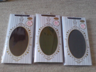 カラータイツ。左からダークブラウン、カーキ、チャコールグレー。微妙に使うのか使わないのかよくわからないwwww