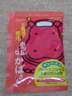 かばさーん。グレープフルーツの良いにおい。(ちょっときついぐらい)発汗作用があるらしいのですが、リカはあまり汗をかかないタイプなのでよくわからず。。。。ショボーン