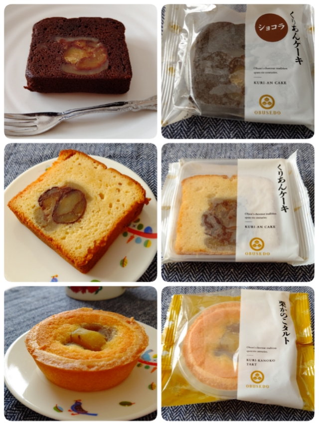 小布施堂のくりあんケーキショコラ、くりあんケーキ、栗かのこタルト。