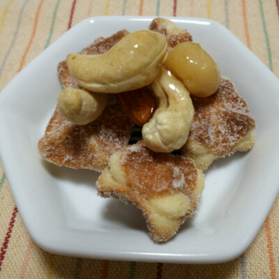本日のおやつはコロコロワッフルとナッツのはちみつ漬け。