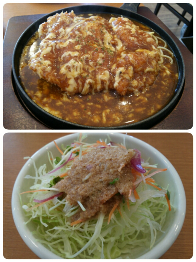 チキンが大きい。その下にはスパゲティ、フライドポテト。食べきれないわ( ̄▽ ̄;)
