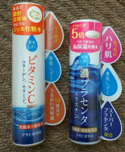 両方ともアサヒ研究所の素肌しずくと言うシリーズ。どっちもこの値段でこの潤いですか?!みたいなくらいのモッチリ。