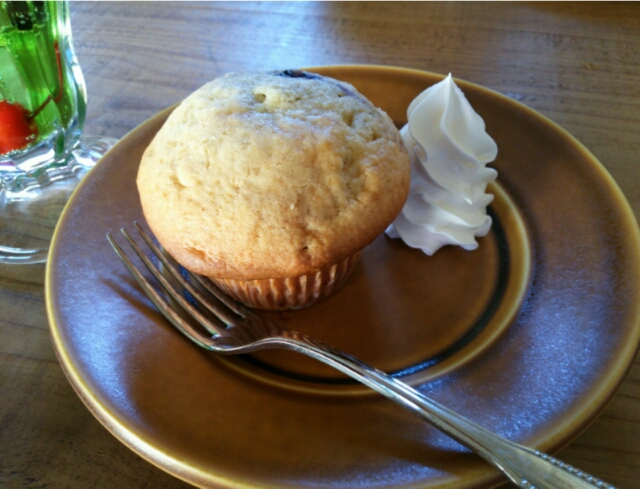 ブルーベリーバナナマフィンとクリームソーダを注文。