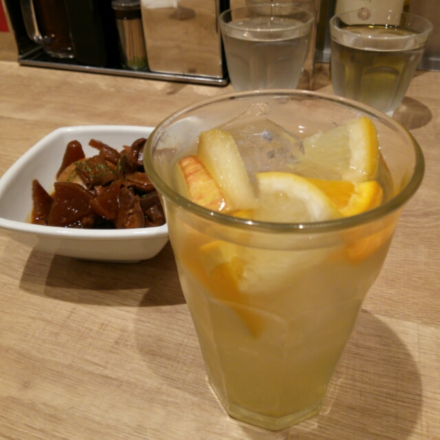 モスコミュール頼んで、お通しは何にしますか?と聞かれて、私は筑前煮を。豆苗の炒め物と迷ったんだけどね。4種類ぐらいから選べたので、ちょっと良かったなと思った。お通しはだいたい一種類で好きだろうが嫌いだろうが出てくるパターンが今まで多かったので、選べるのは嬉しかった。