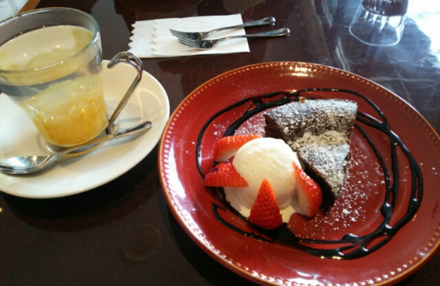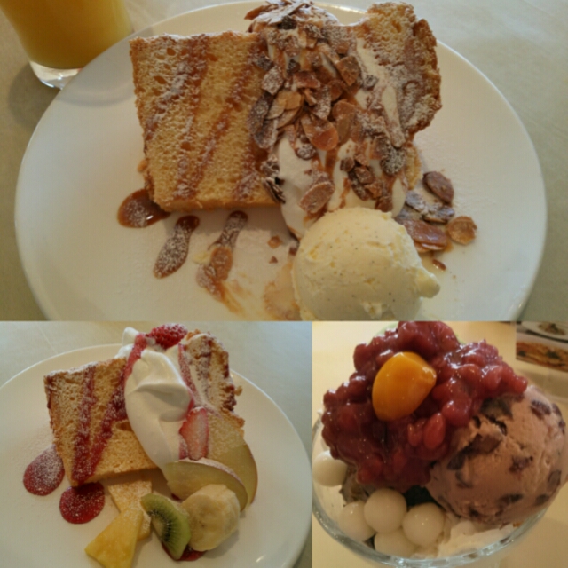 みんなでちょっとこの辺では有名なカフェに行ってみた。シフォンケーキとかパフェとか頼んで食べた。かなり大きく…( ̄▽ ̄;)夕飯食べられるのか?と心配になるほど。その心配は的中した!!!
