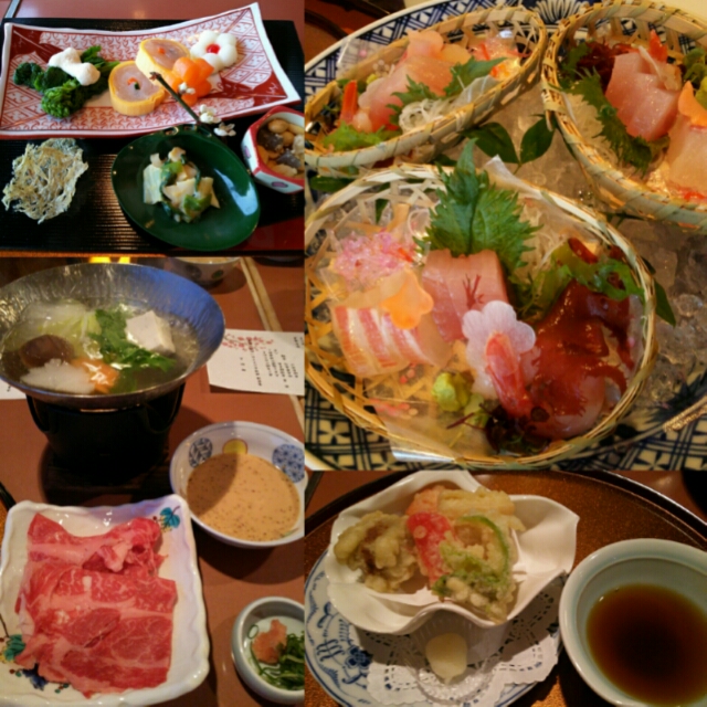 前菜、お刺身、しゃぶしゃぶ、天ぷら。