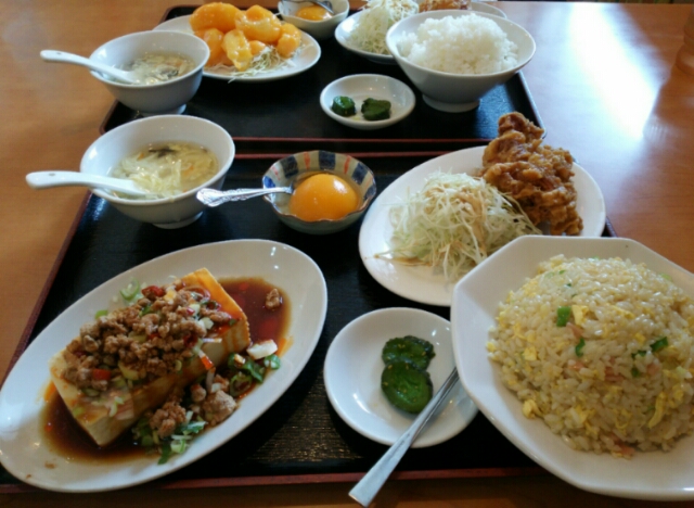 彼がお仕事の時によく来てたとこらしいです。私はお豆腐の定食。彼はエビマヨの定食。