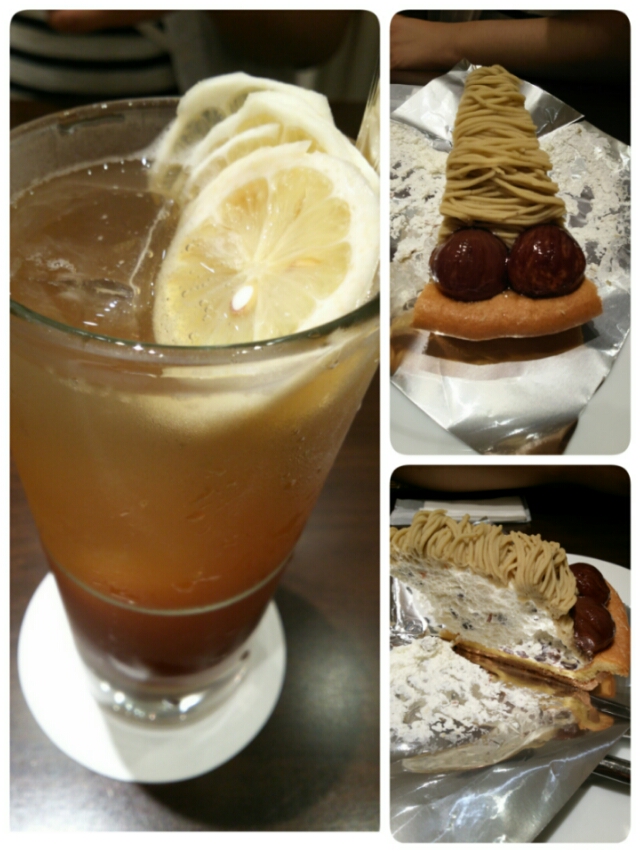 和栗のタルトがあったのでそれを注文。飲み物はハニーレモンソーダみたいなもの。