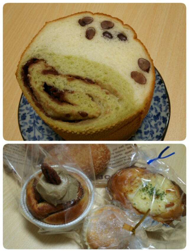 上には甘い豆。下の方は抹茶とあん。これ、焼いて食べると美味しいんだ。