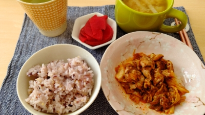 キャベツと白菜。冷蔵庫にギューギューにつまってるので、キャベツは回鍋肉に、白菜はお味噌汁に。さつまいももあったので、お味噌汁にいれてやったわ!