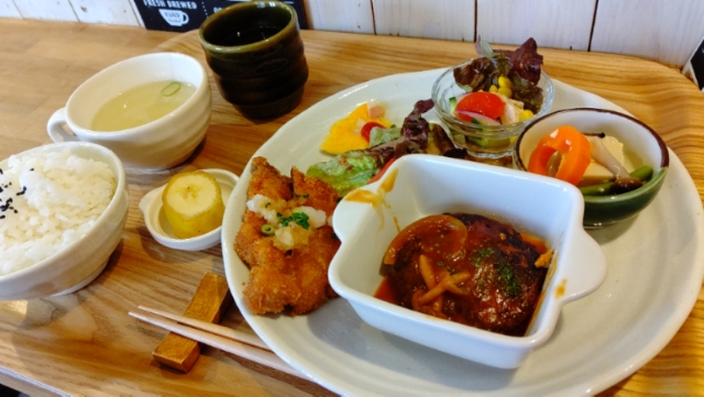 土曜日は煮込みハンバーグとおろし豚カツ。