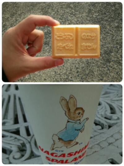 下の写真はジュースを買ったら、ピーターラビットだった。ピーターラビット大好き❤でも、さすがにこれは持って帰るわけにもいかず、写真を撮ってみた。